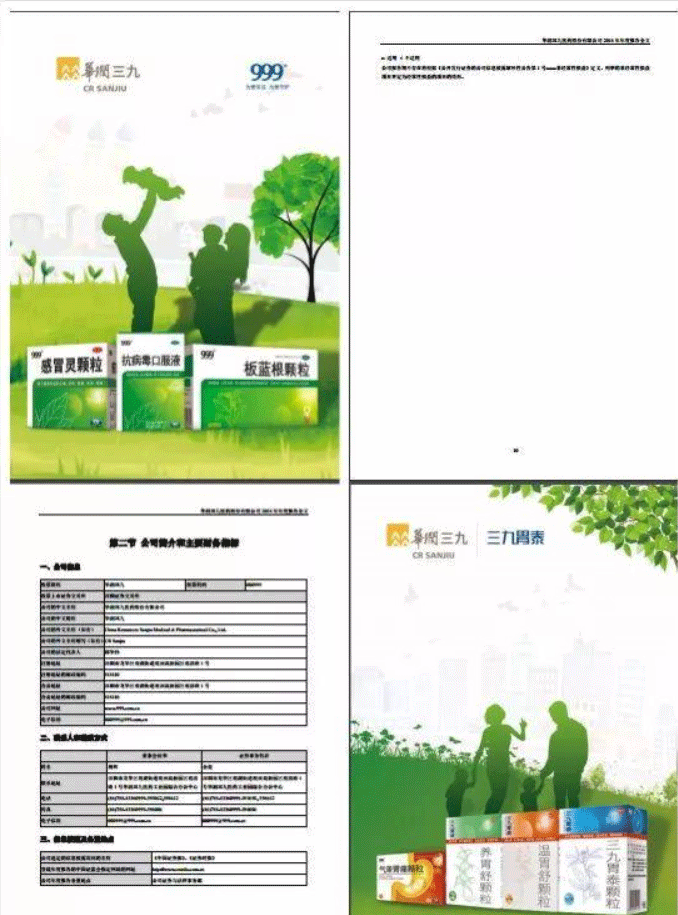 如華潤三九,其2018年年度報告每個章節(jié)結(jié)尾處,均插入了主營產(chǎn)品的宣傳圖片,而年報的首、尾頁也通過設(shè)計圖片相呼應(yīng)。