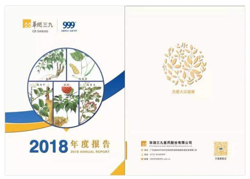 圖:華潤三九2018年年報首尾頁